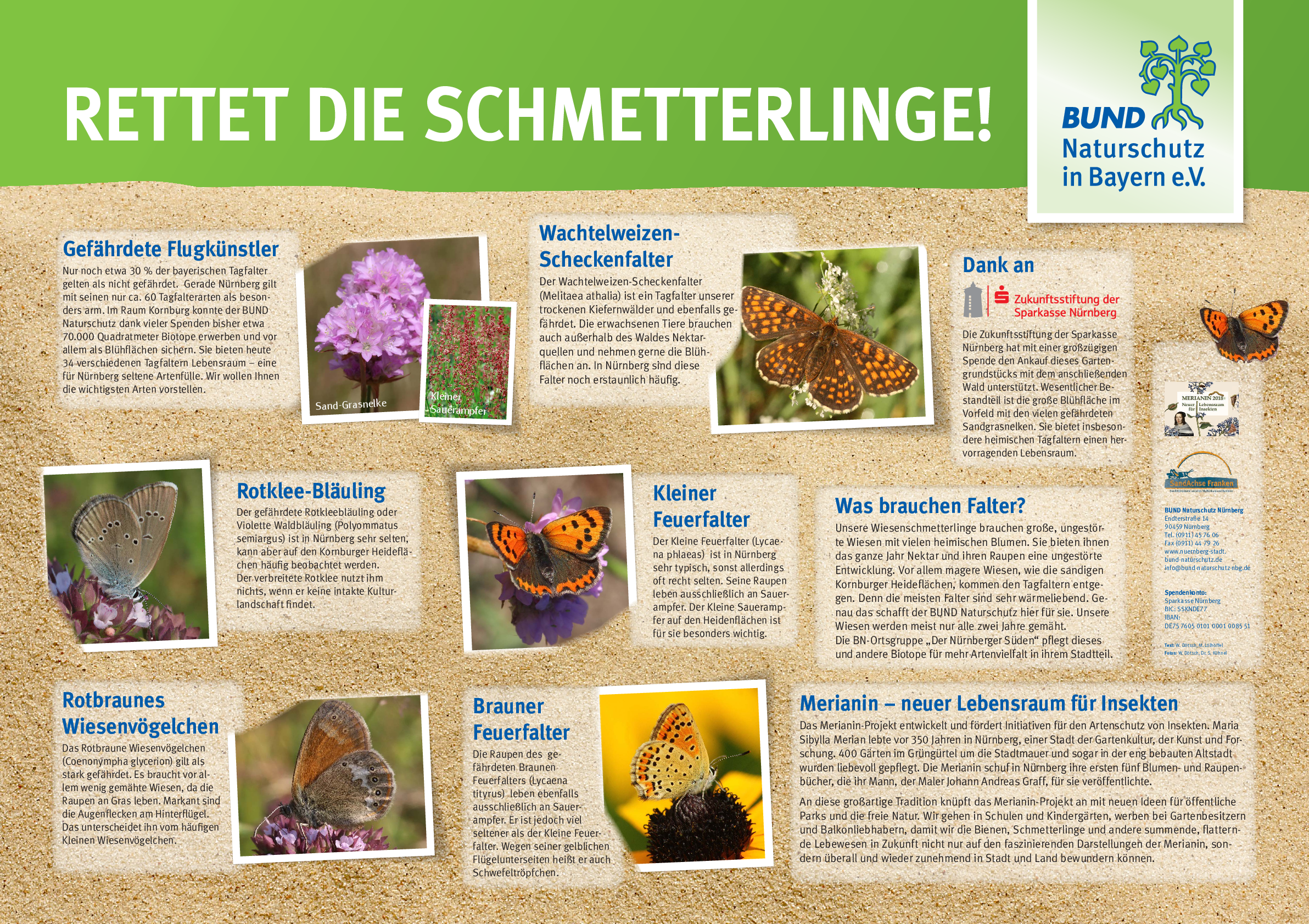 Die Stadt Nürnberg konnte gewonnen werden, die mit dem „InsektenReich“ im Volkspark Marienberg schon eine vorbildliche Fläche geschaffen hatte und bei weiteren Anlagen auch immer die Bedürfnisse von Schmetterlingen im Auge behalten will.