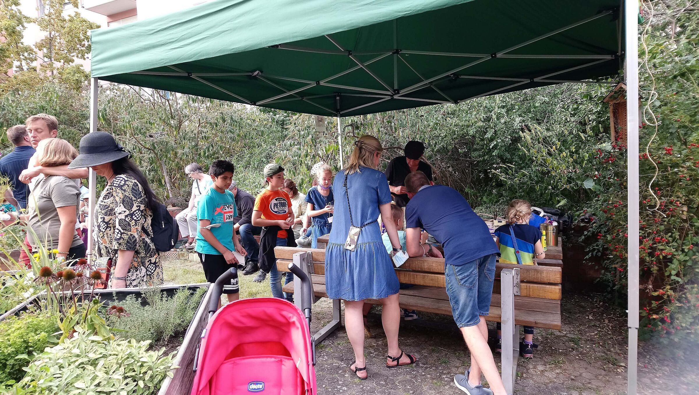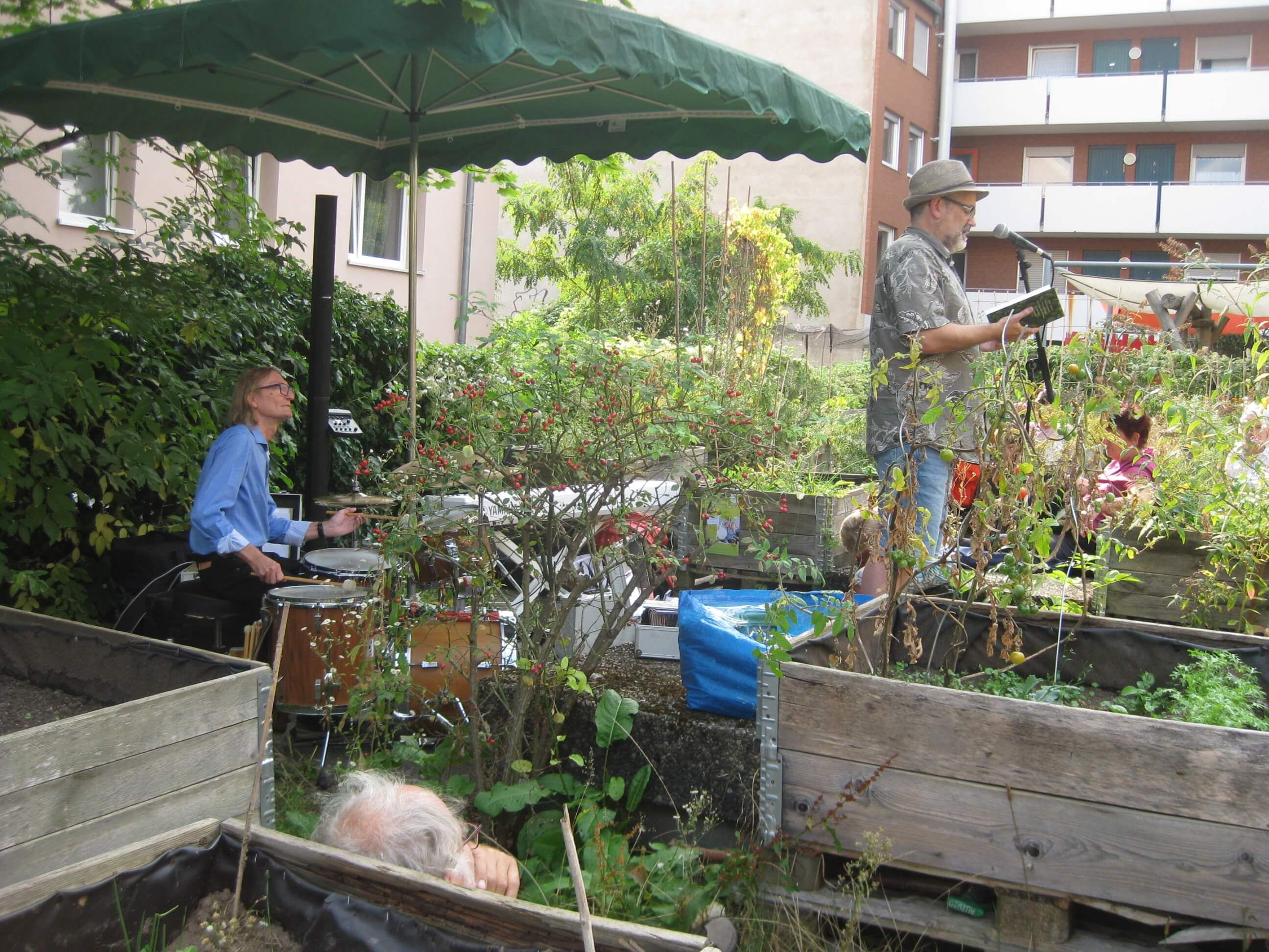 Besonders glücklich waren wir darüber, dass die Tastentigerin Hildegard Pohl und der Traumtrommler Yogo Pausch das Fest den ganzen Nachmittag über musikalisch begleitet haben. Die Feier endete mit gemeinsamer, spontaner Dschungelmusik der beiden mit Rainer Edelmann.