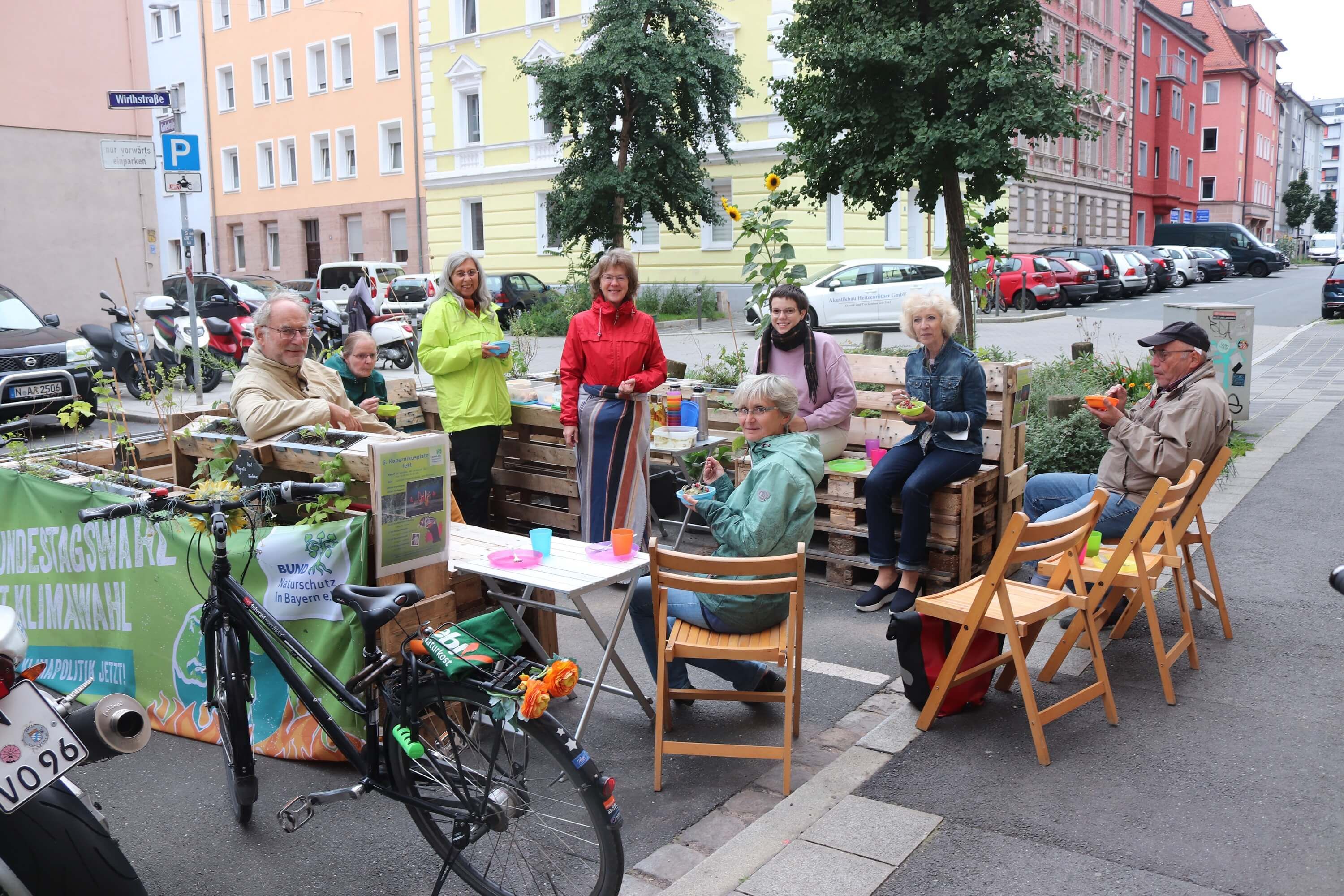 Der Parking Day hat einige Besucher in unser Parklet, Wirthstraße vor der Nummer 11, gelockt, deshalb wollen wir eine Tradition daraus machen und uns immer freitags dort treffen – vorausgesetzt natürlich, das Wetter macht mit.