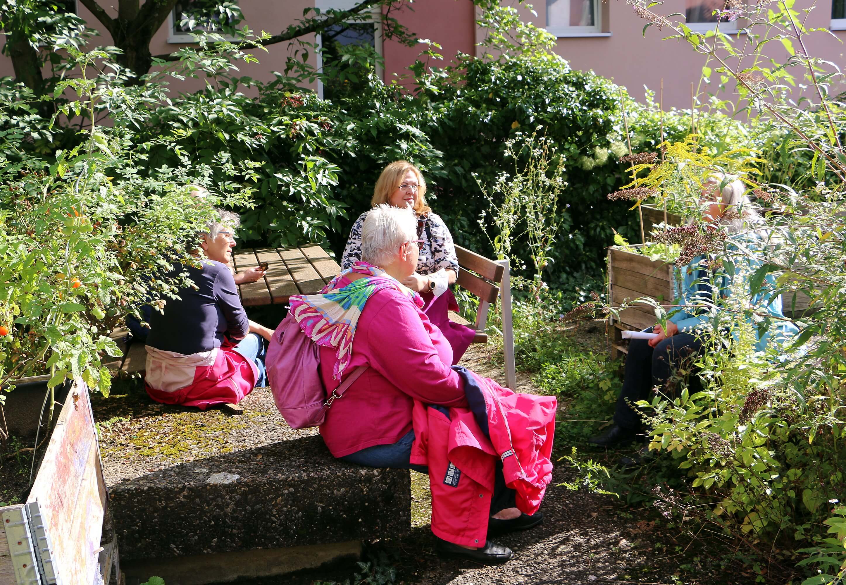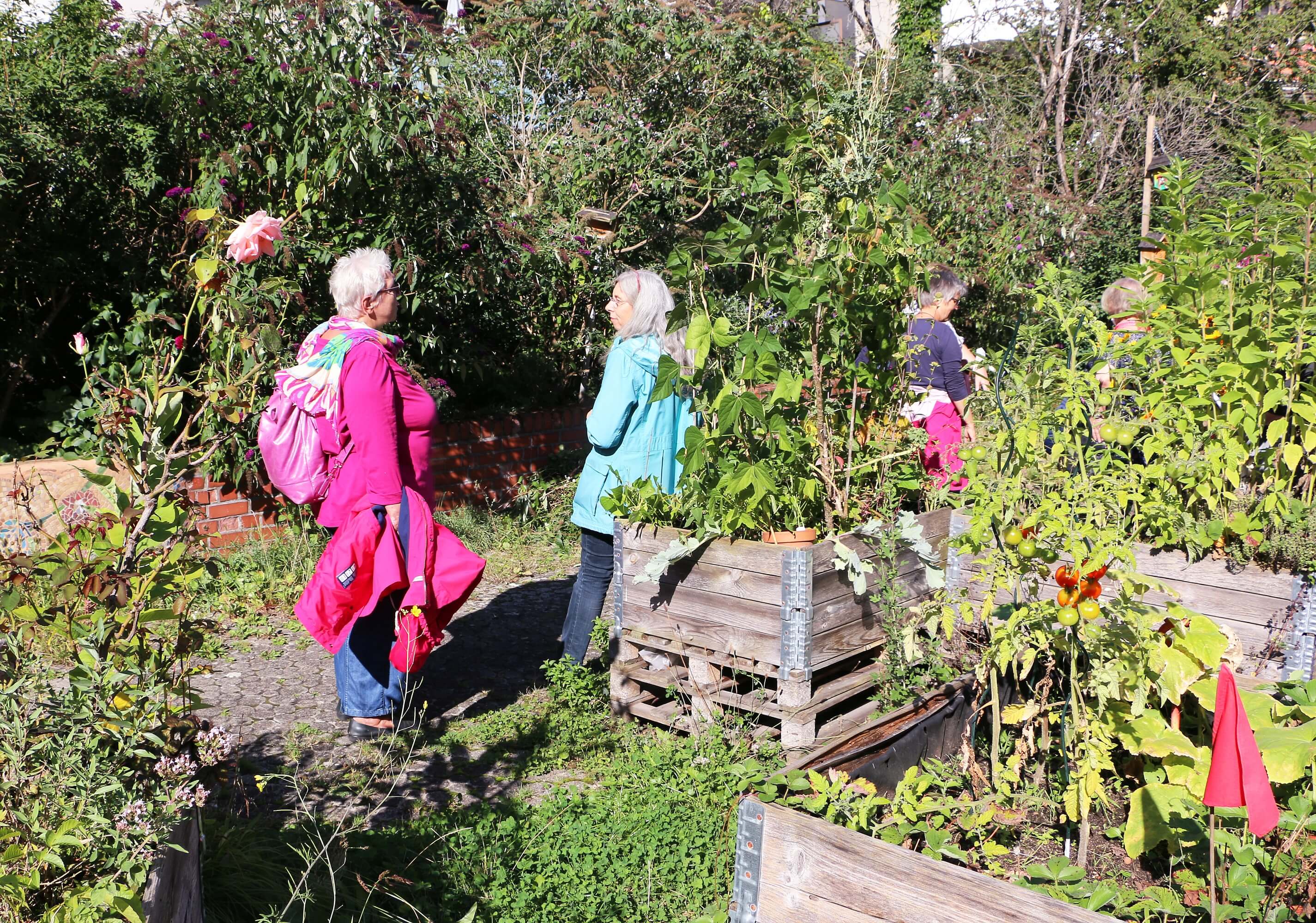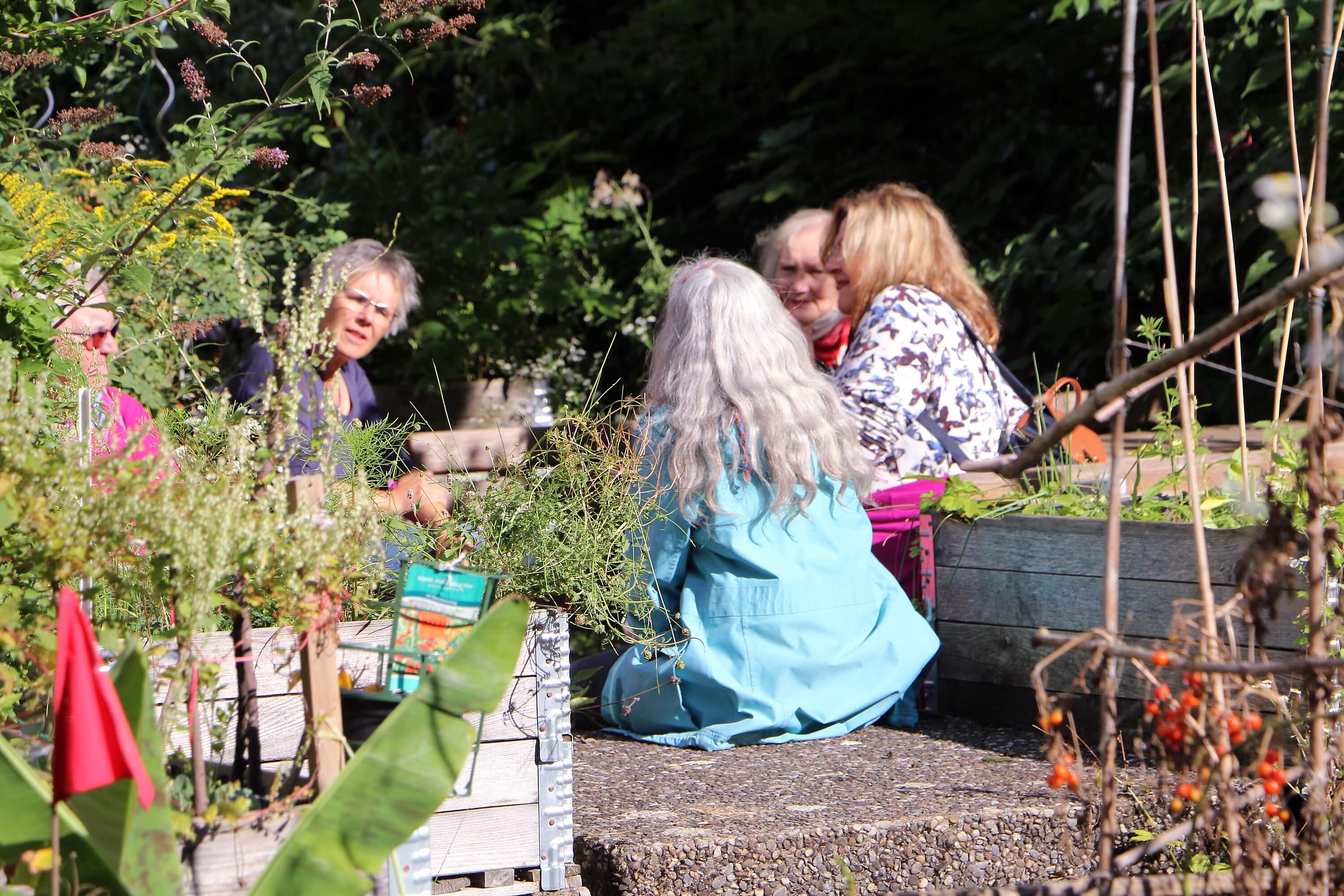 Kiss steht für Kontakt- und Informationsstelle Selbsthilfegruppen in Mittelfranken. In einer entspannten Stunde zwischen Grün und Blüten konnte Ingrid Treutter einer sehr interessierten Gruppe die Geschichte des Hofgärtchens erzählen und deren Fragen beantworten.