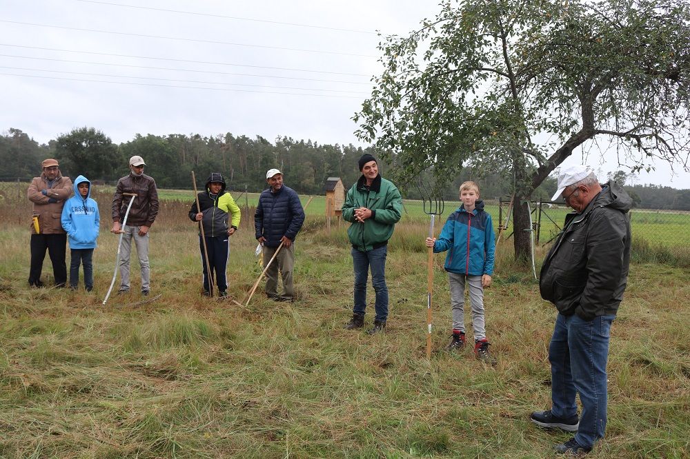 Ende September lud der Arbeitskreis Friedensweg der Religionen wieder zu seinem jährlichen Umweltaktionstag. Seit elf Jahren stellt der BUND Naturschutz dazu eine seiner Biotopflächen und das Rahmenprogramm. Corona, Konfirmation und Kälte hatten die Reihen in diesem Jahr etwas geleert. Nur knapp 20 Aktive von BN, St. Markus, der Ahmadiyya-Gemeinde und der Begegnungsstätte Brücke/Köprü fanden auf der Wiese zusammen. Diese gingen aber mit derartigem Elan ans Werk, dass die Pflegeaktion sogar schneller als geplant abgeschlossen werden konnte.