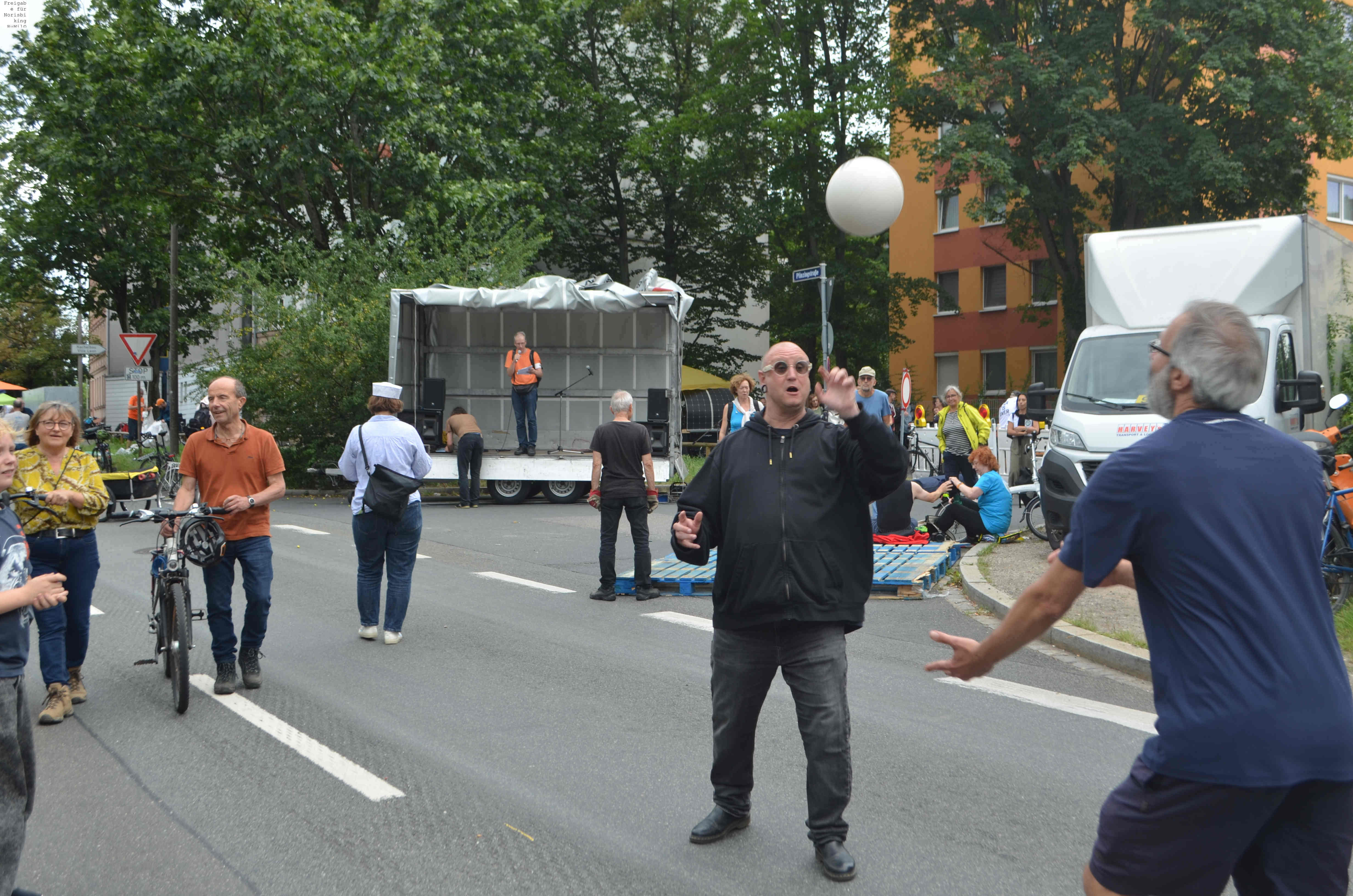 Jegliche Diskussion bereits im Keim zu ersticken, den Stadtrat ungeniert als kostenlose Werbebühne missbrauchen, beschränkt die öffentliche und politische Willensbildung. Der Bedarf größerer Aktionen, um einen offenen und demokratischen Diskurs voranzubringen, war daher offensichtlich. So entstand die Idee eines ausgiebigen Runden-Radelns für das Aus der Norisring-Rennen. Da der Norisring trotz der frühzeitigen Versammlungsanmeldung schon im August 2023 nicht zur Verfügung gestellt wurde, musste das sich bildende große Aktionsbündnis auf den Frankenschnellweg ausweichen, wodurch die Ausbau-KritikerInnen auch gleich mit im Boot waren. Dort fand nun am ersten Juli-Wochenende gesundes, klimafreundliches und inklusives Runden-Drehen statt – für ein lebenswertes Nürnberg. Und für eine nachhaltige Stadtentwicklung, bei der die Klimaanpassung und die Mobilitätswende, also wesentliche Grundlagen für die Zukunft Nürnbergs, zentral sind.