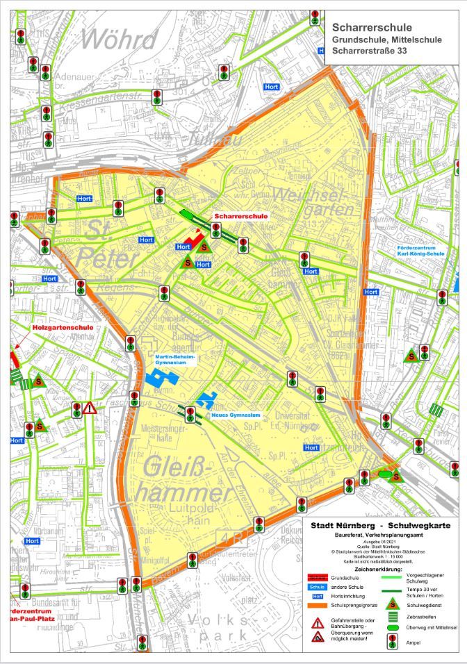 Die Stadt Nürnberg hat im Juli 2022 im Verkehrsausschuss des Stadtrats eine Fußverkehrsstrategie beschlossen, mit dem Ziel, dass mehr Menschen in Nürnberg gerne und häufiger ihre Wege zu Fuß zurücklegen. Letztendlich soll die strategische Fußverkehrsförderung dazu beitragen, Unfallzahlen zu senken, die Selbstverständlichkeit des Zufußgehens zu unterstreichen und die Lebensqualität in Nürnberg zu steigern. Kurze Wege gewährleisten ein gesundes, attraktives Wohnumfeld – und umgekehrt. Der Stadt Nürnberg ist nach eigener Aussage Mobilität und Sicherheit im Straßenverkehr wichtig und für die jüngsten Verkehrsteilnehmer ein besonderes Anliegen.