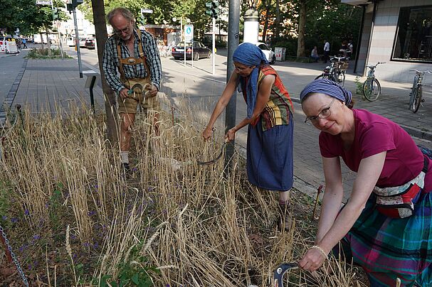 Anfang August war es soweit: Das Getreide auf der kleinen Acker-Baumscheibe wollte geerntet werden. Mit Mähdrescher anrücken ging nicht und auch um…