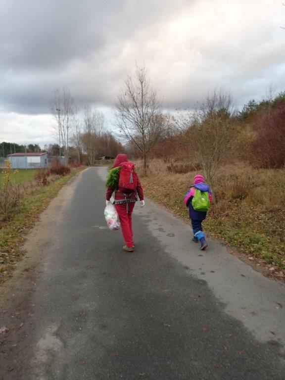 Daraufhin brachten Lisa und ich zum ersten Mal Müllsäcke mit. Gemeinsam mit den Kindern hinterfragten wir, was alles in den Müll gehörte. Auch erklärten wir, welchen Müll die Kinder aufgrund der Verletzungsgefahr lieber nicht aufheben sollten (z.B. Glasscherben, zerbrochene Flaschen, intakte Böller). Alle Kinder waren Feuer und Flamme, jetzt sofort Müll zu sammeln. Wir liefen auf den Schweinauer Buck und kamen bei unserem Weihnachtsbaum vorbei, den wir ein paar Wochen davor mit Karotten und Äpfeln geschmückt hatten. Es waren nur noch die Bänder da und die Kinder beschlossen, die Bänder abzumachen, damit sich keine Tiere darin verfangen konnten. Als wir zum Schluss zum Skaterplatz am Schweinauer Buck kamen, waren die Müllsäcke voll und ein paar Kinder hatten auch Schätze gefunden, die sie stolz den anderen Kindern zeigten und mit nach Hause nehmen wollten. Die vollen Mülltüten legten wir in den Mülleimer, der sich am Skaterplatz befindet.