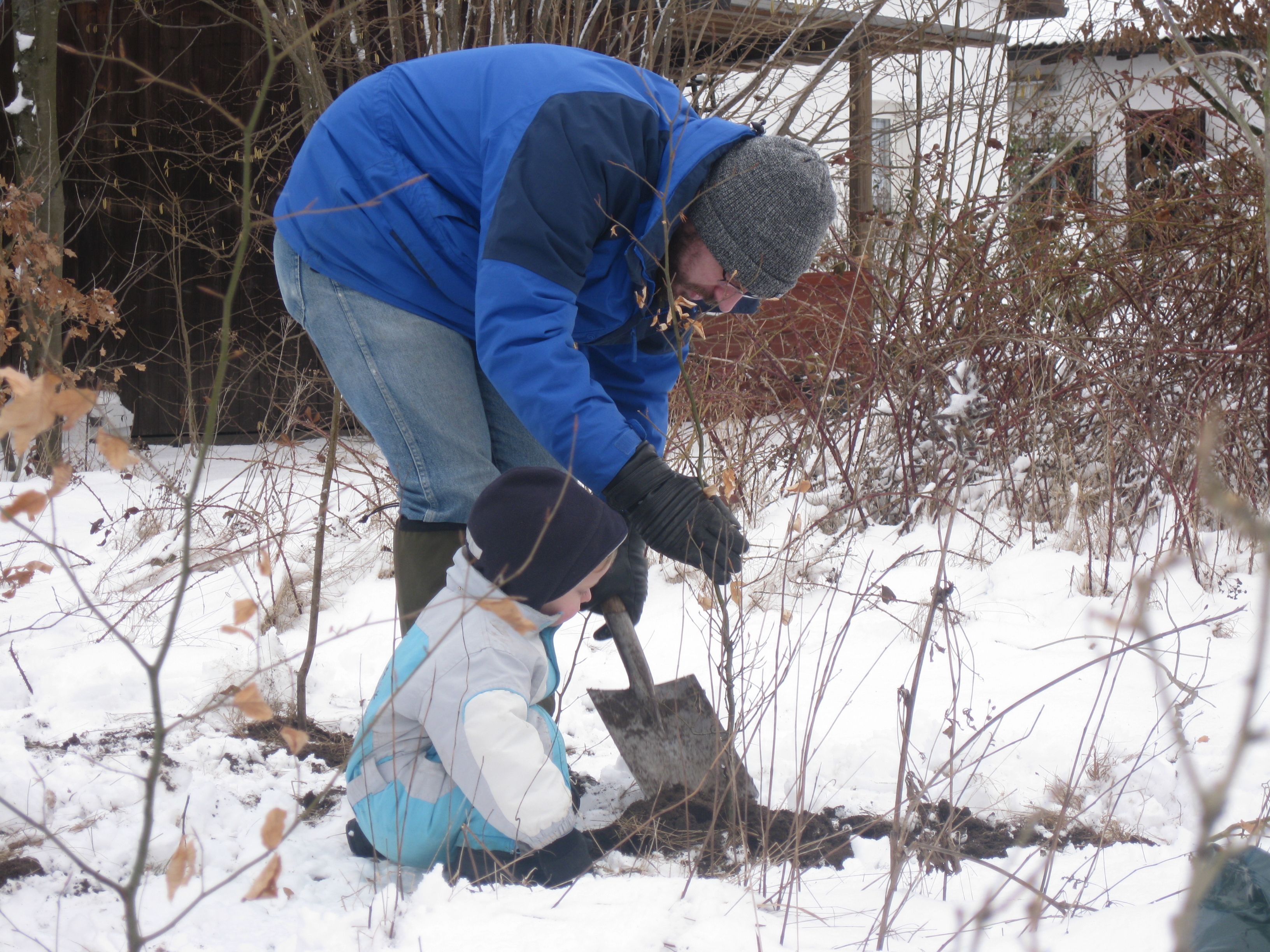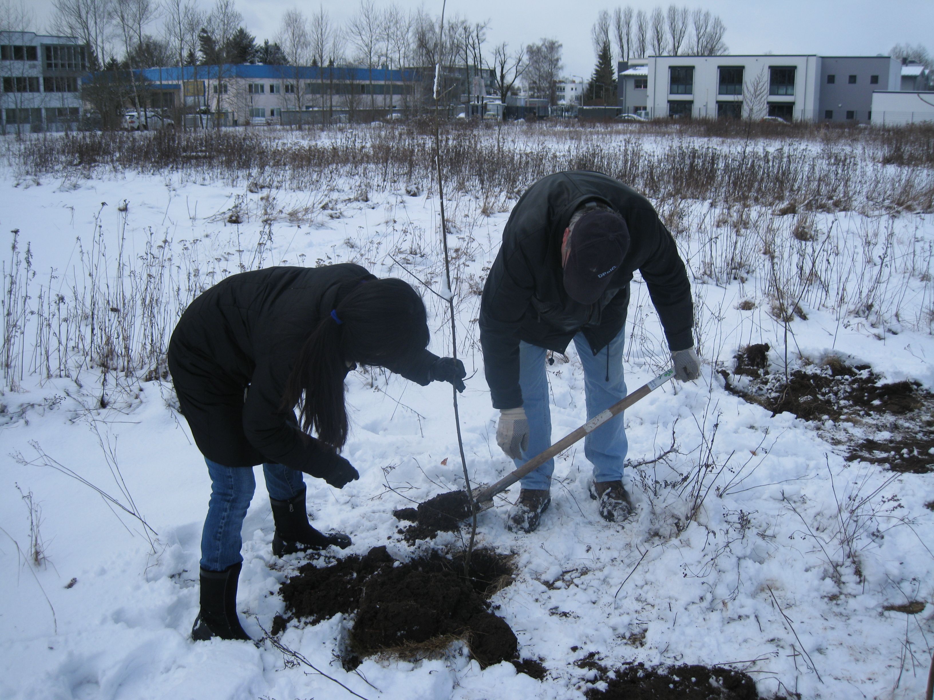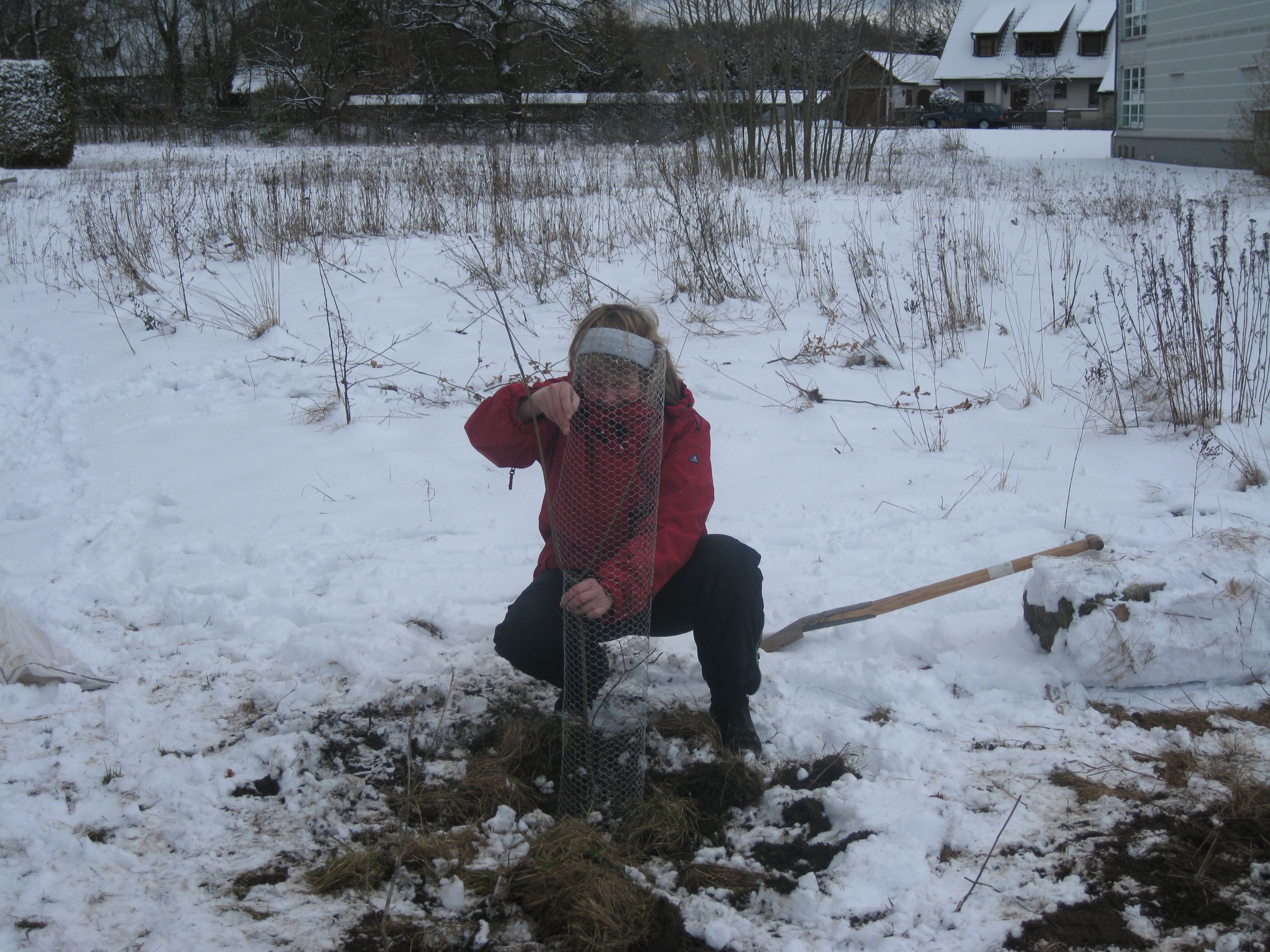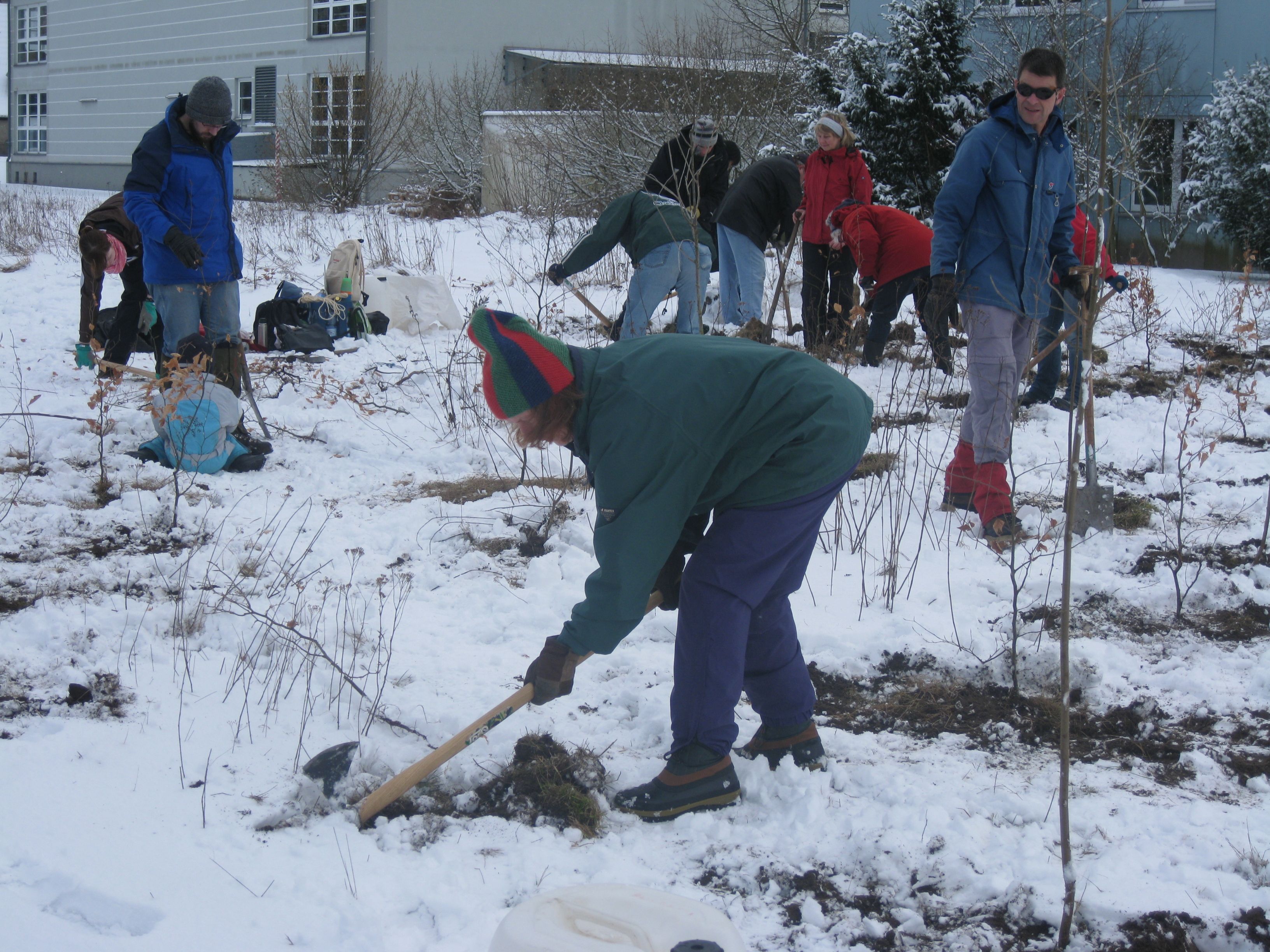 Anfang März 2010 haben wir mit tatkräftiger Hilfe anderer Aktiver bei Schnee, aber Sonnenschein eine Hecke aus Eichen, Linden und Ahorn als Abgrenzung und Sichtschutz gepflanzt. Sandsteinblöcke als Sitzgelegenheit laden zum Verweilen ein.