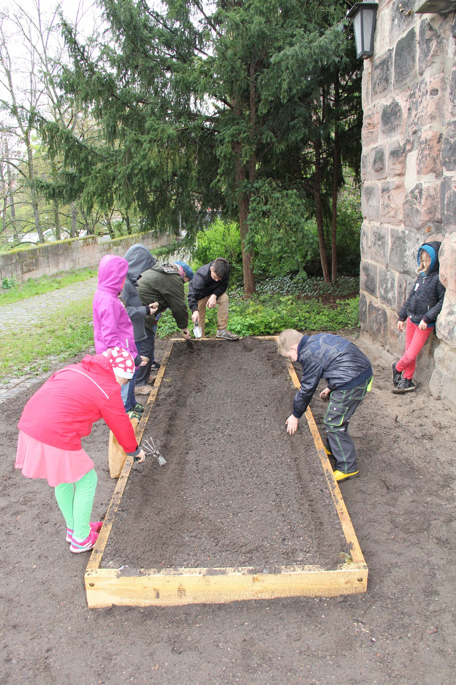 Im zweiten Jahr pflanzen und pflegen, gießen und ernten Schülerinnen und Schüler von zwei Nürnberger Grundschulklassen Beete im Spittlertorzwinger.