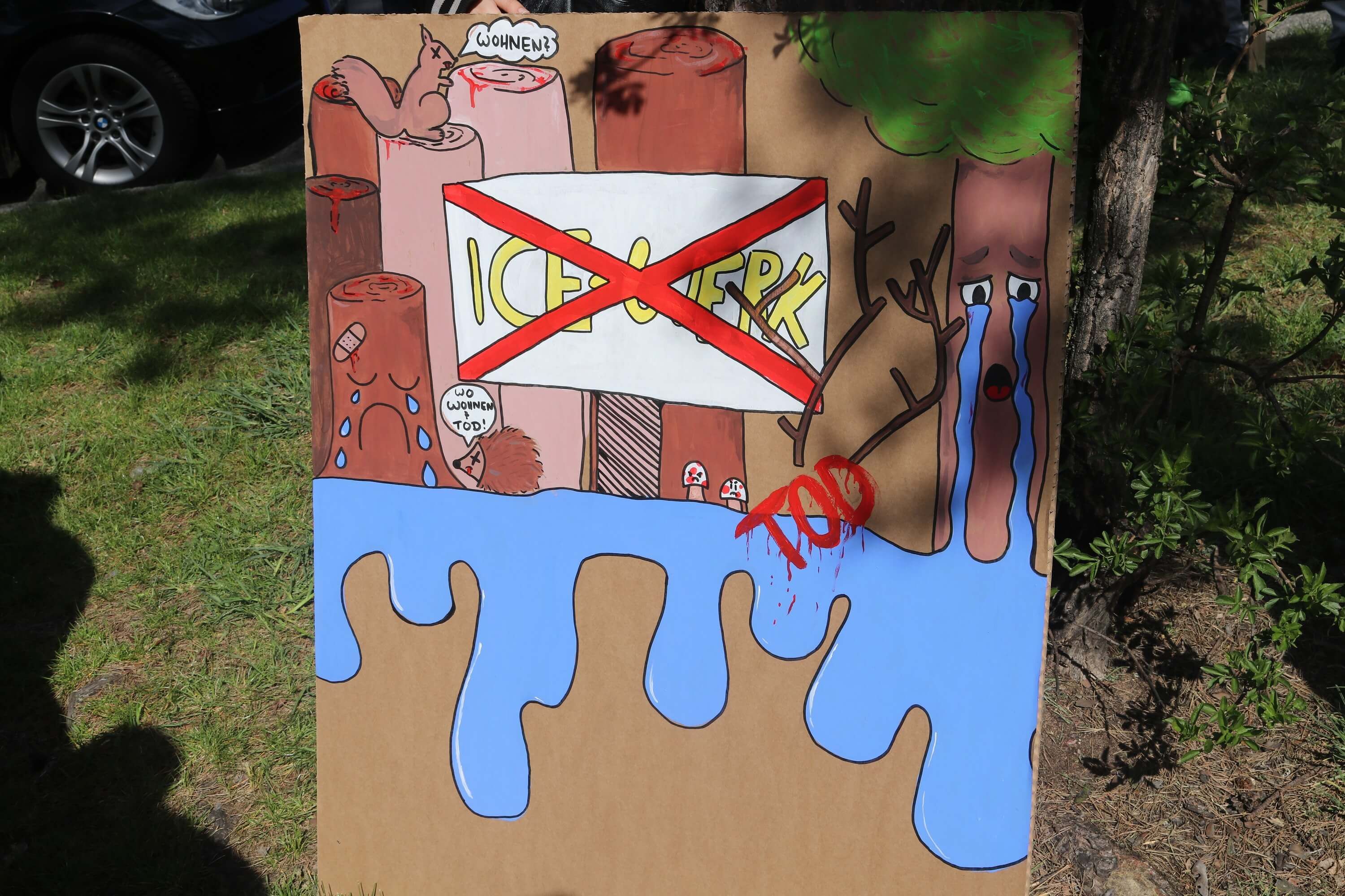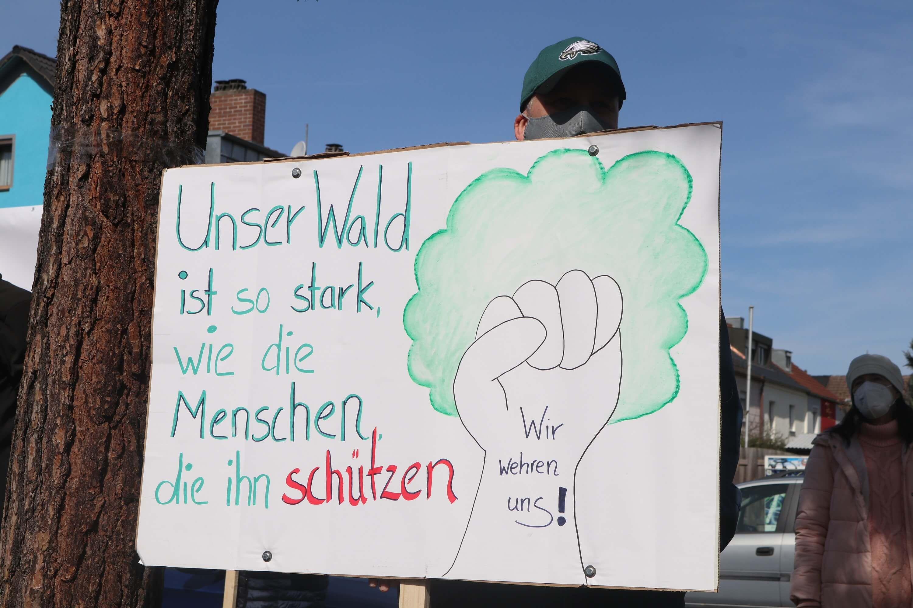 Im Rahmen des Klimacamps protestierte der BUND Naturschutz am 29. Mai gegen die Rodung des Reichswalds.