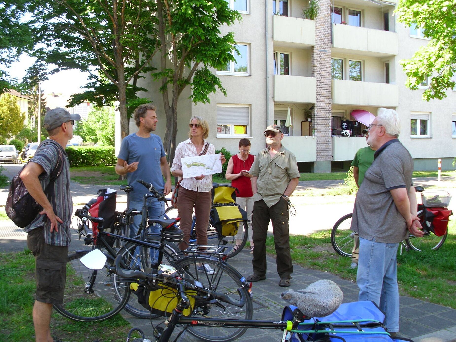 Gleich am Pferdemarkt war gut erkennbar, wie Freiraumverbindung und Grünanlage sich gegenseitig ergänzen und die Wertigkeit des öffentlichen Raums steigern. Unverständlich ist allerdings, dass hier mitten durch die Grünanlage eine übergeordnete Schnellverkehrsachse geplant ist, also quasi die Autobahn mitten durchs Dorf. Schneller Verkehr hat in Aufenthalts- und Fußgängerbereichen sowie in Quartiers-Grünanlagen nichts zu suchen, auch nicht, wenn er unmotorisiert ist. Bettina Klose formulierte, was offensichtlich war: „Der Radschnellweg nach Schwabach muss anderweitig trassiert werden. Bevorzugt sollte dies auf bestehenden Straßen erfolgen, um auch die für eine Schnellverbindung benötigten Querschnitte realisieren zu können.“